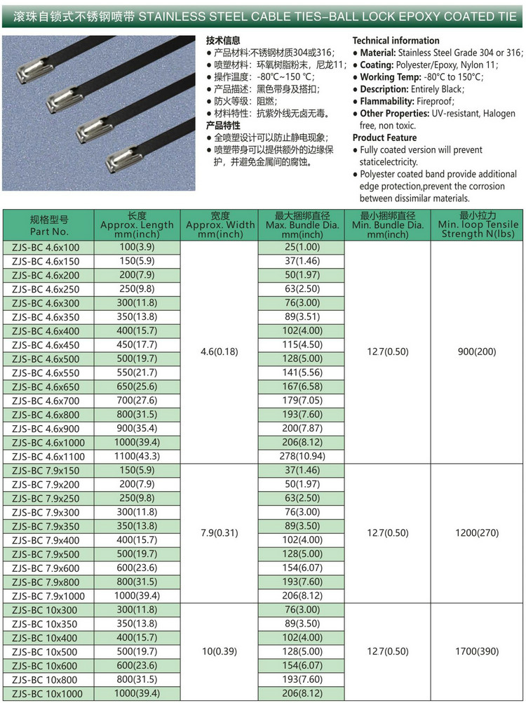 Stainless Steel Cable Ties-ball Lock Epoxy Coated Tie